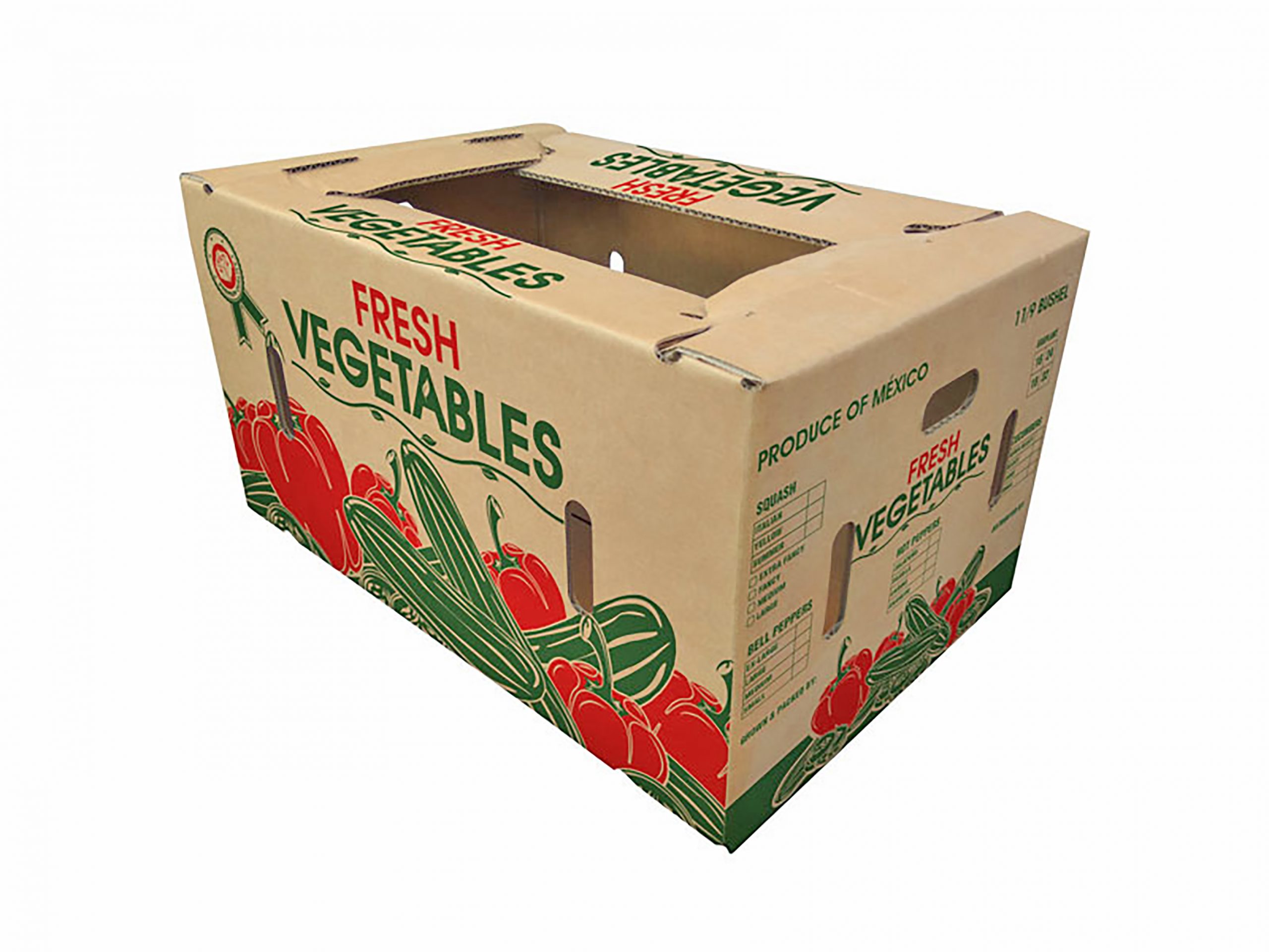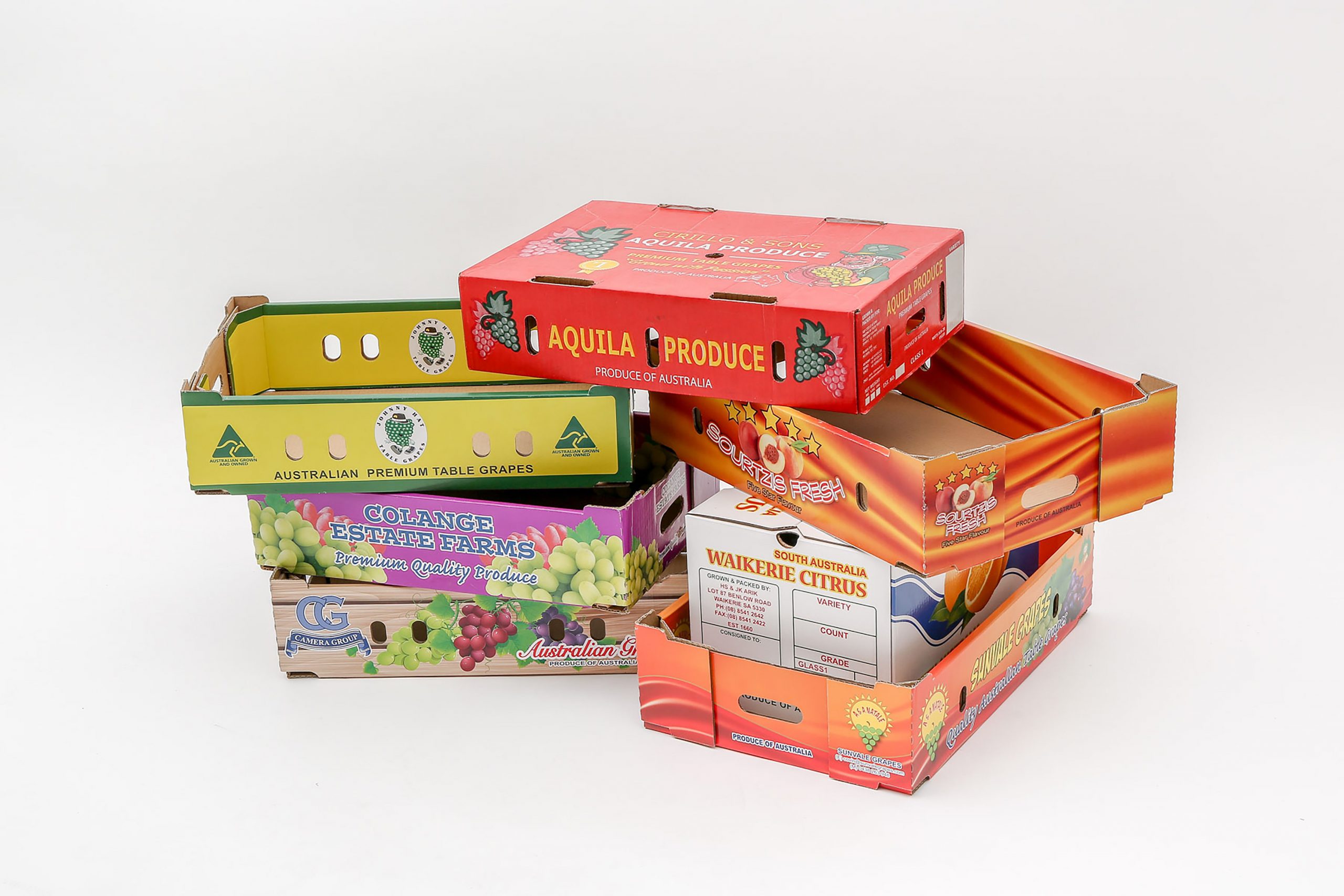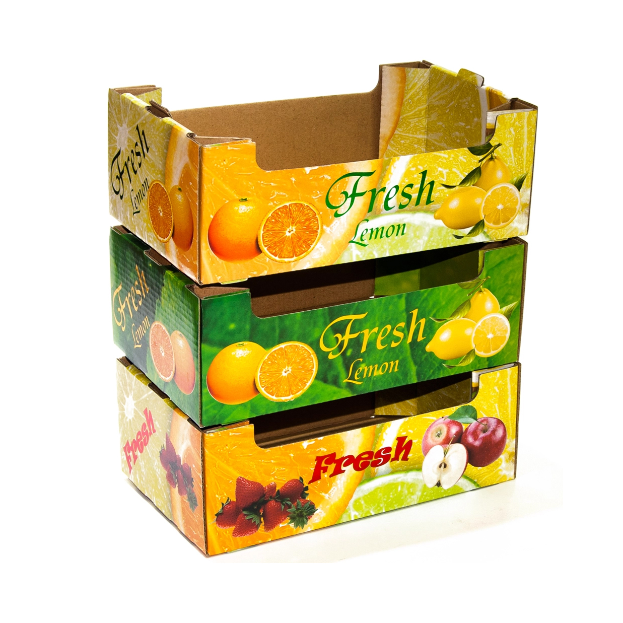 يتم انتاج هذه المنتجات التي تخاطب قطاع الدجاج واللحوم والفواكه والخضروات الطازجة, ضمن اصناف التركيب اليدوي والزوايا الخشبية وطوي الالة. يتم انتاج صناديق المواد الغذائية بخصائص امكانية النقل ومقاومة للرطوبة بتقنية طباعة عالية الجودة من اجل العرض وباوراق مناسبة للتلامس مع الاغذية.