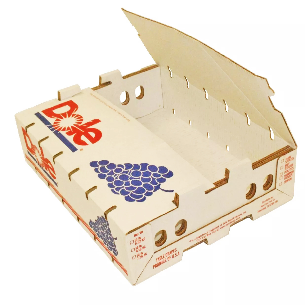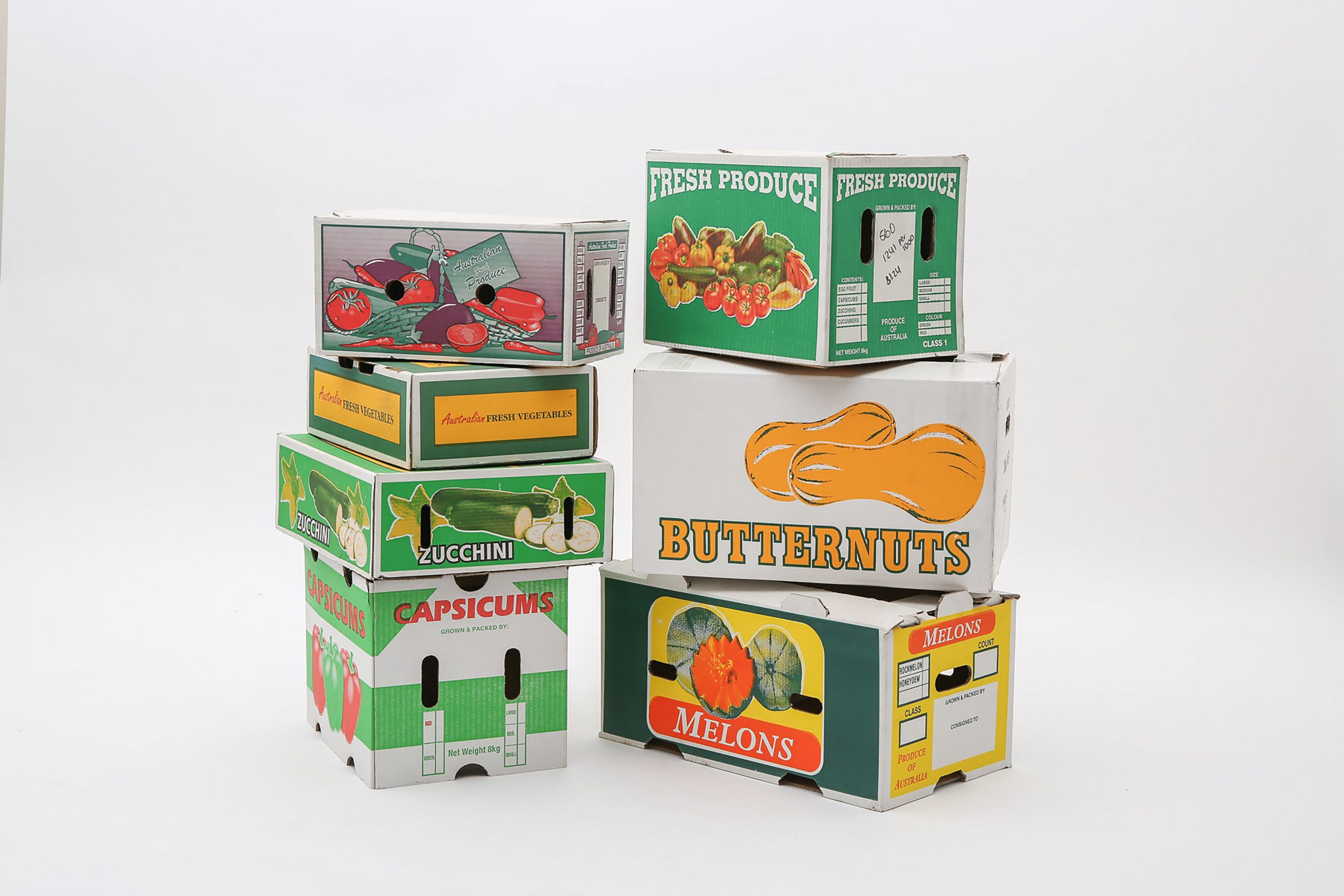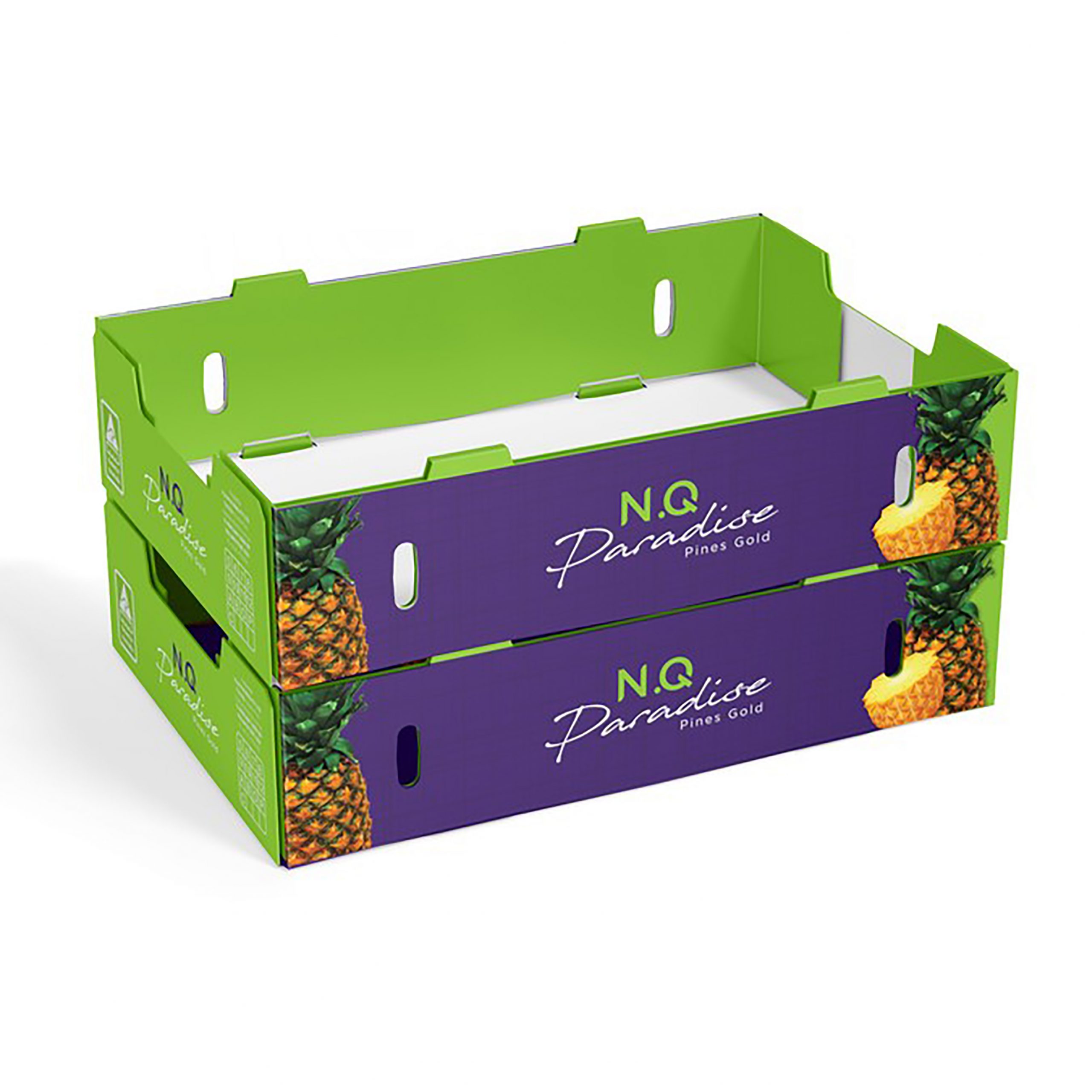 يتم انتاج هذه المنتجات التي تخاطب قطاع الدجاج واللحوم والفواكه والخضروات الطازجة, ضمن اصناف التركيب اليدوي والزوايا الخشبية وطوي الالة. يتم انتاج صناديق المواد الغذائية بخصائص امكانية النقل ومقاومة للرطوبة بتقنية طباعة عالية الجودة من اجل العرض وباوراق مناسبة للتلامس مع الاغذية.